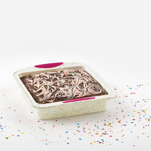 SQUARE CAKE PAN CONFETTI FUCHSIA 8×8″