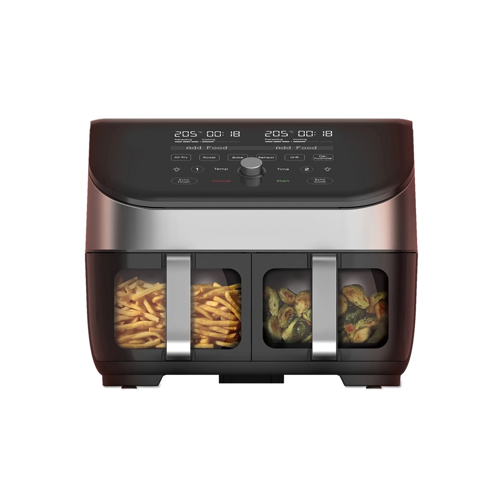 Instant Vortex Plus Dual Drawer 8-in-1 Air Fryer with ClearCook Stainless Steel Twin Air Fry Baskets: Cook 2 foods in 2 ways, and finish at the same time.
