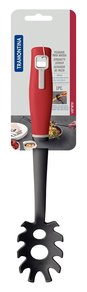 Everyone has their preferred sauce, but pasta is loved by all! This is why you need Tramontina’s Verano red nylon pasta server with polypropylene handle. This utensil is dishwasher safe, heat resistant to 180°C/350°F, has a polypropylene handle and will make measuring just the right portions much easier. Take this opportunity to order yours and serve the most flavorful dishes!